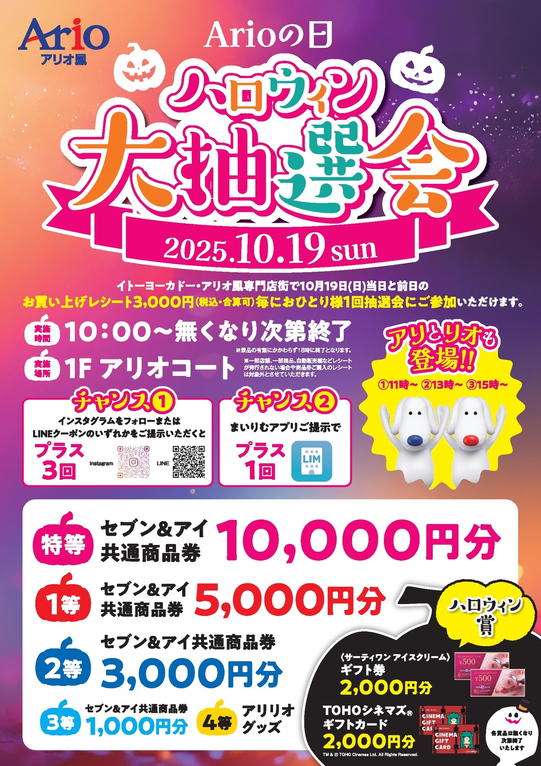 【10/19(日)】アリオの日ハロウィン大抽選会