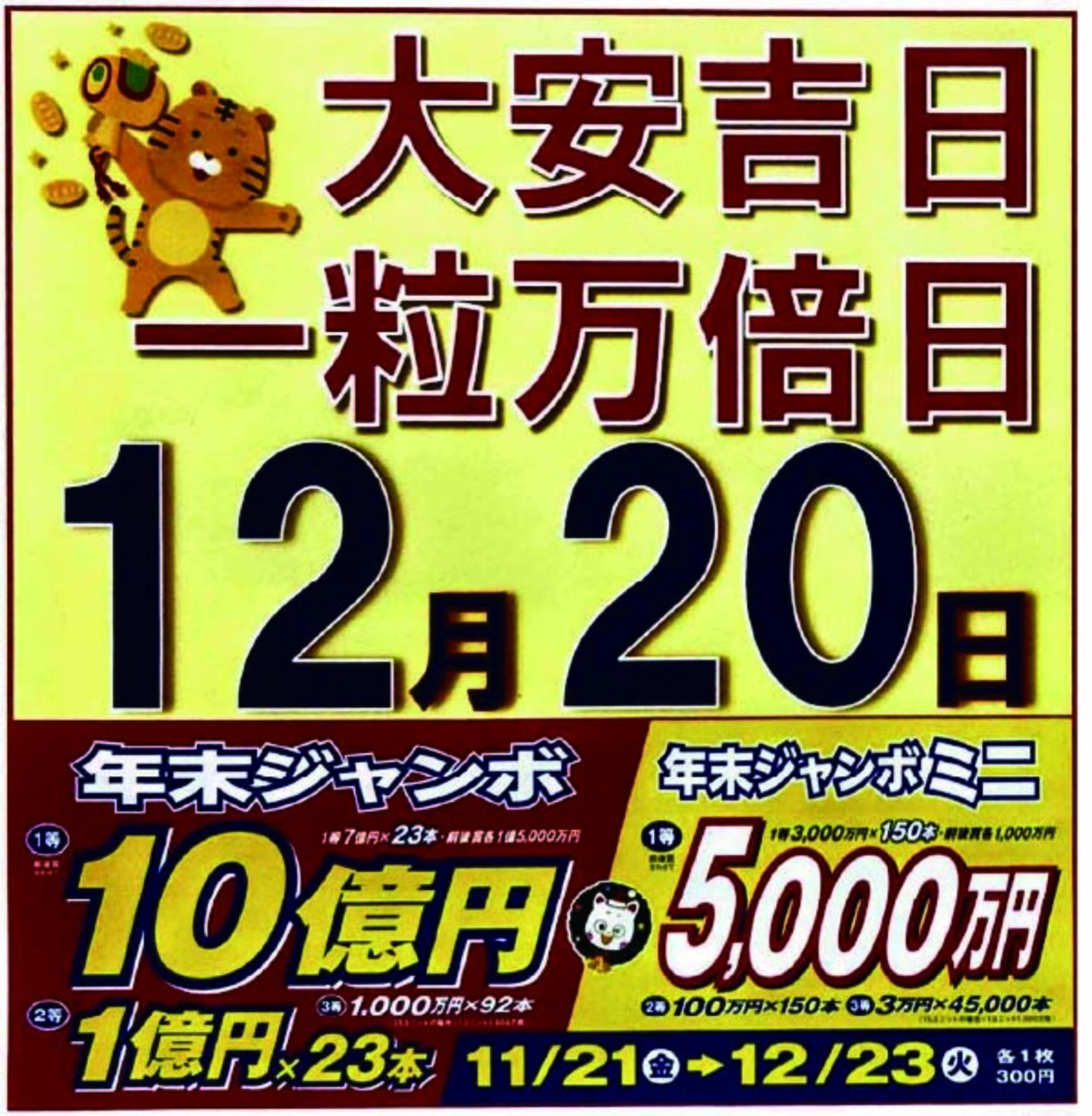 今年の年末ジャンボは12月23日まで!