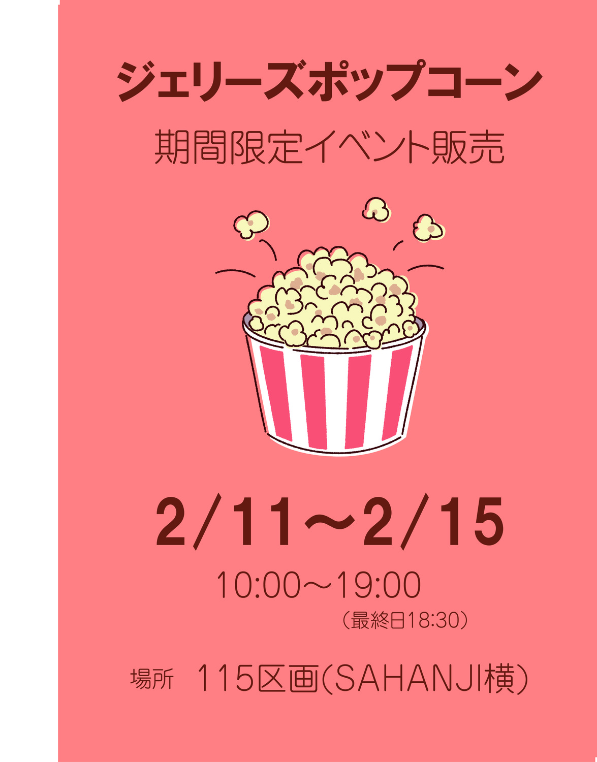 1F SAHANJI横にてポップコーンを販売