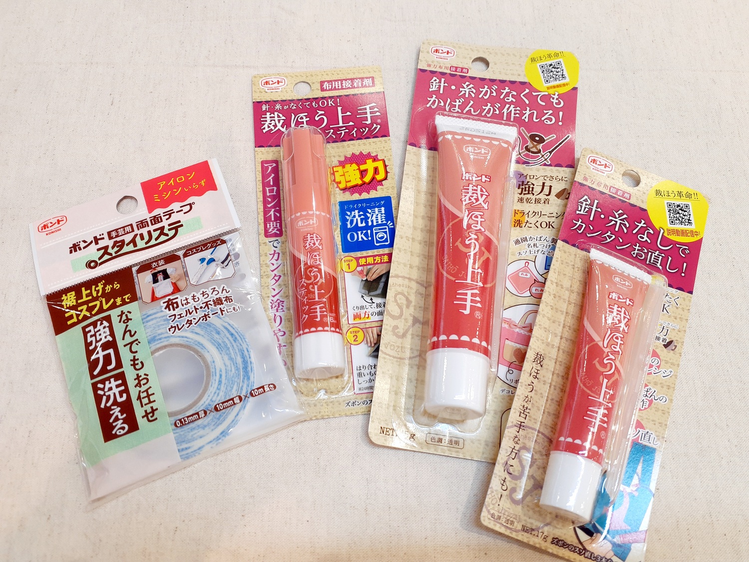 生地の接着にすっかりおなじみとなったボンド、裁ほう上手が強い味方です!
