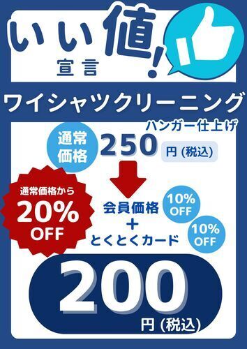 ビジネスシーンやカジュアルでも欠かせないワイシャツを、いつでも清潔&お得に保つために、「ワイシャツいい値!宣言」を実施中!