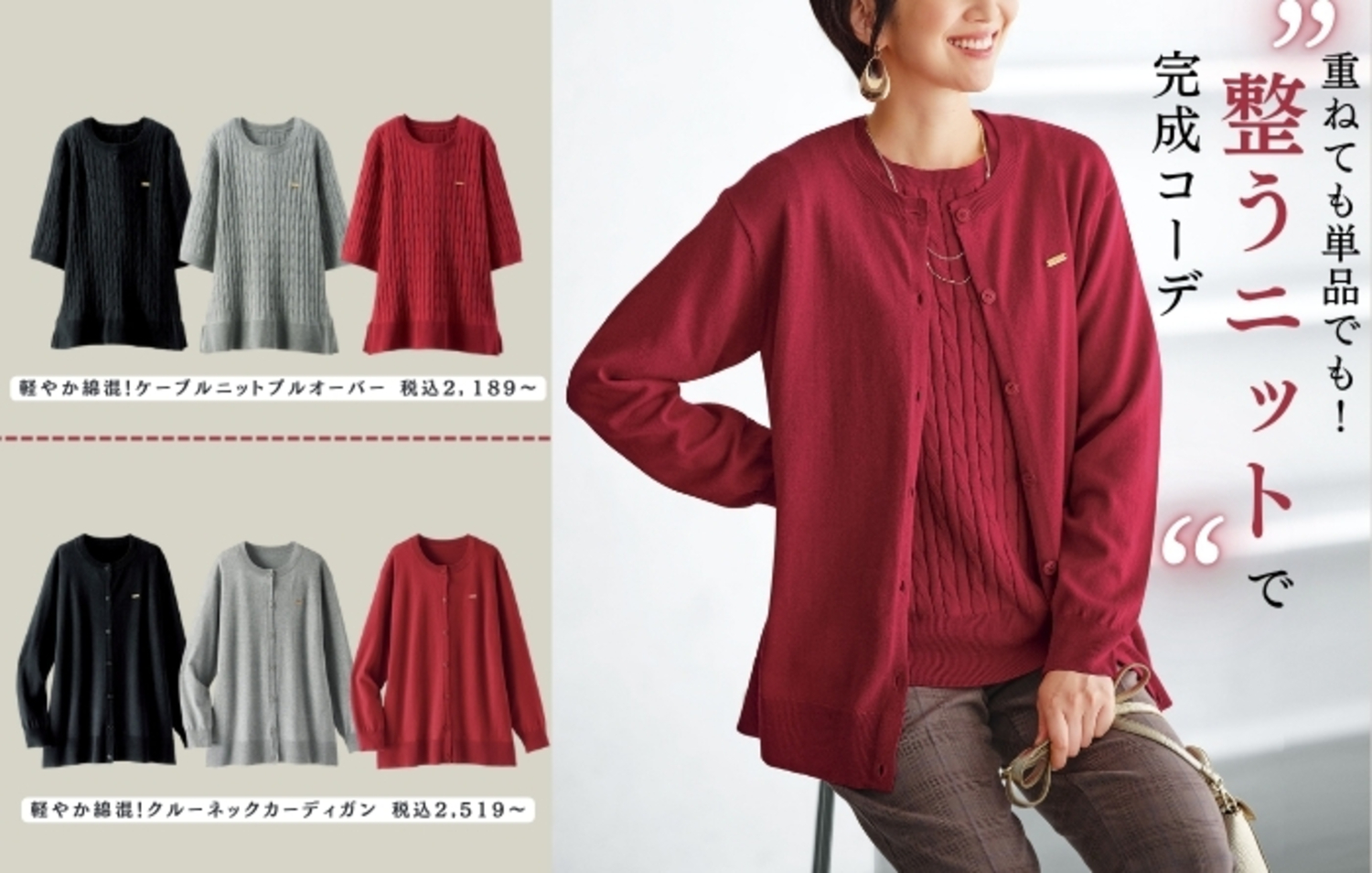 カーデは程よい丈でスカートと合わせるとエレガント♪