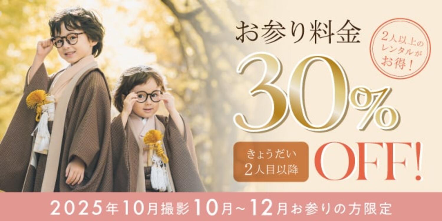10月に予約・撮影で10月~12月にお参りする方の2人目以降のお参り料金が30%オフになります。