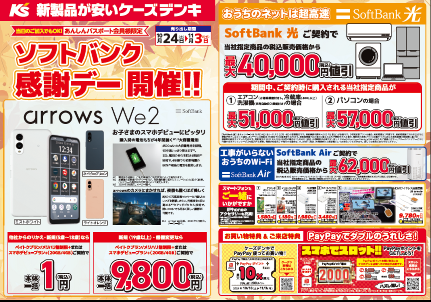 【ケーズデンキアリオ鳳店】では10月24日(金)~11月3日(月・祝)まで
