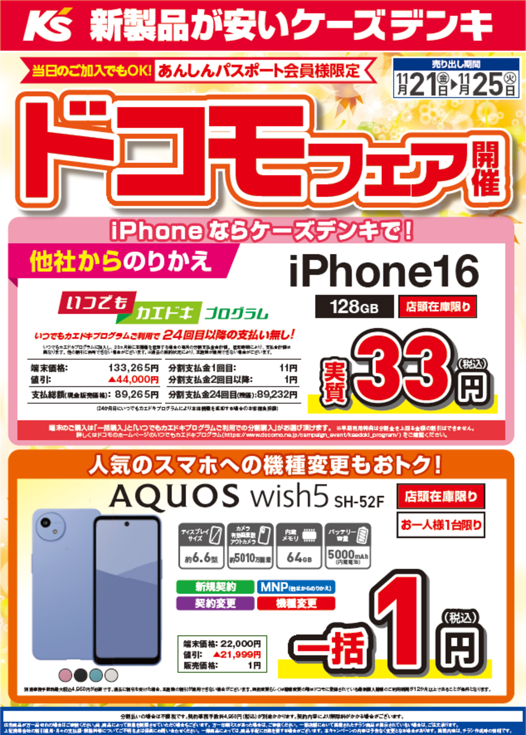 【ケーズデンキアリオ鳳店】では11月21日(金)~25日(火)までの5日間