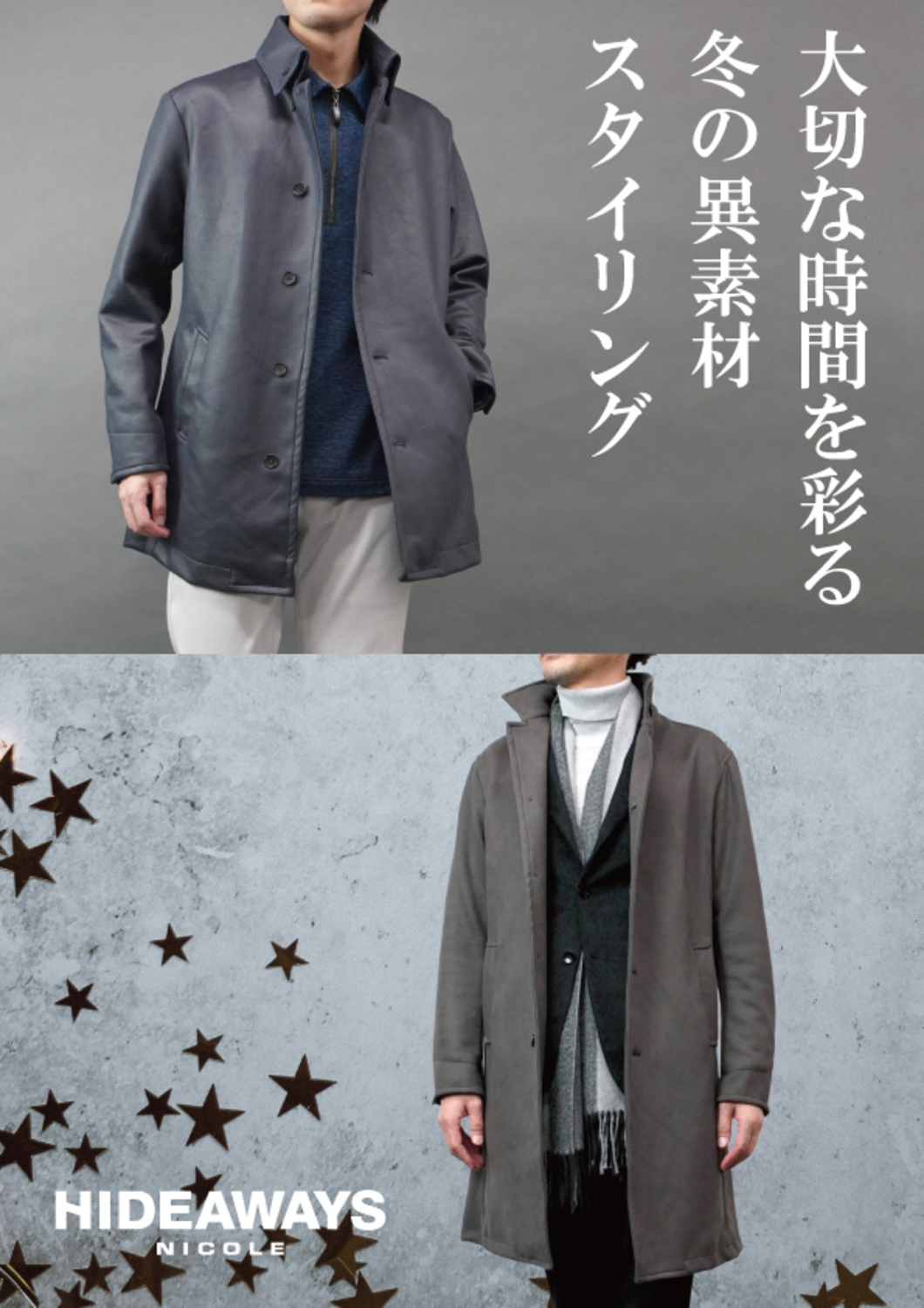 HIDEAWAYSでは冬の大切な時間を彩る冬の異素材コートを紹介します。