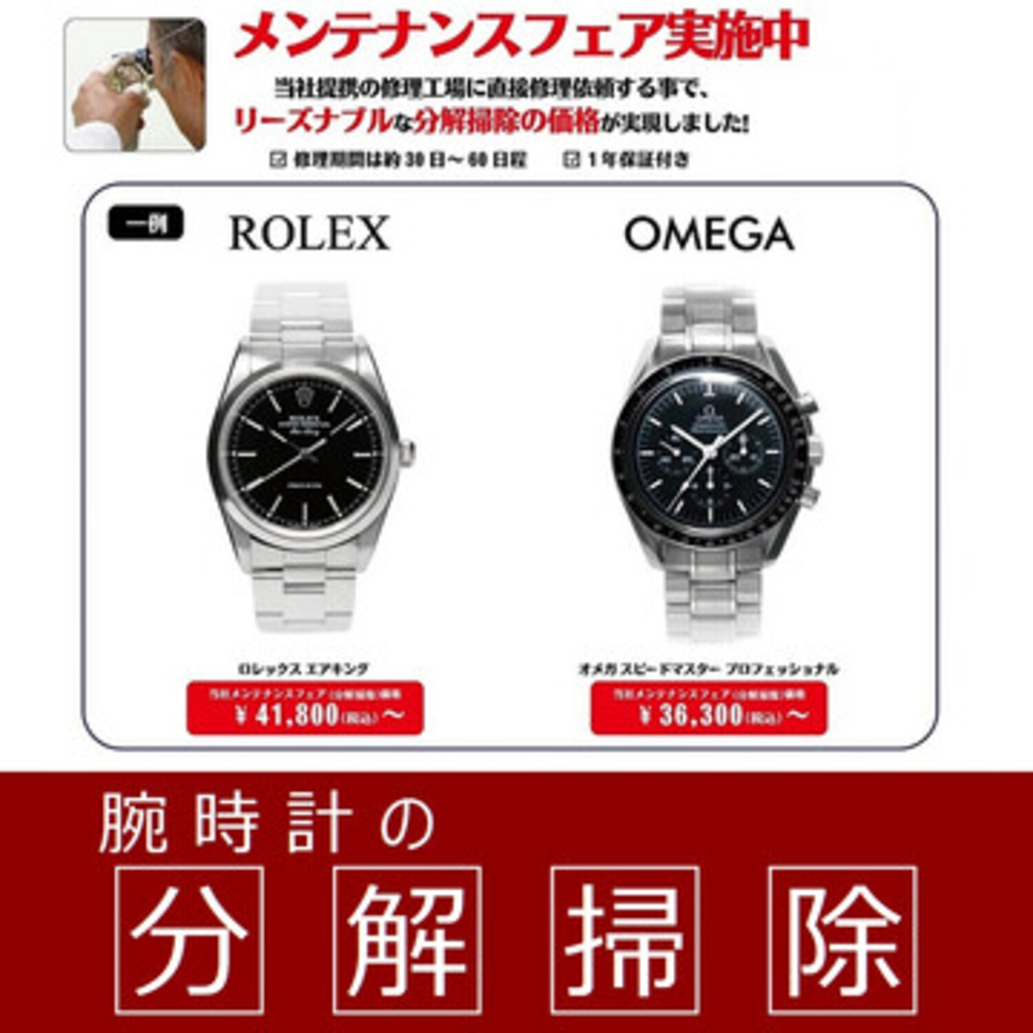 当社提携の修理工房に直接修理を依頼する事で、リーズナブルな分解掃除の価格が実現しました!