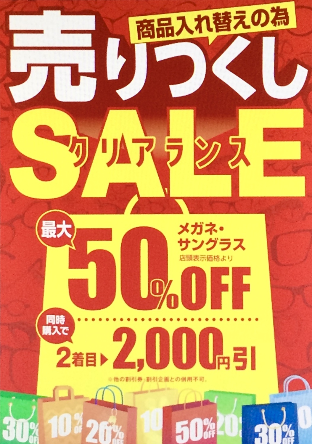 2026年2月19日(木)まで、メガネ・サングラスが最大50%OFFとなる「売りつくしクリアランスSALE」を開催いたします。