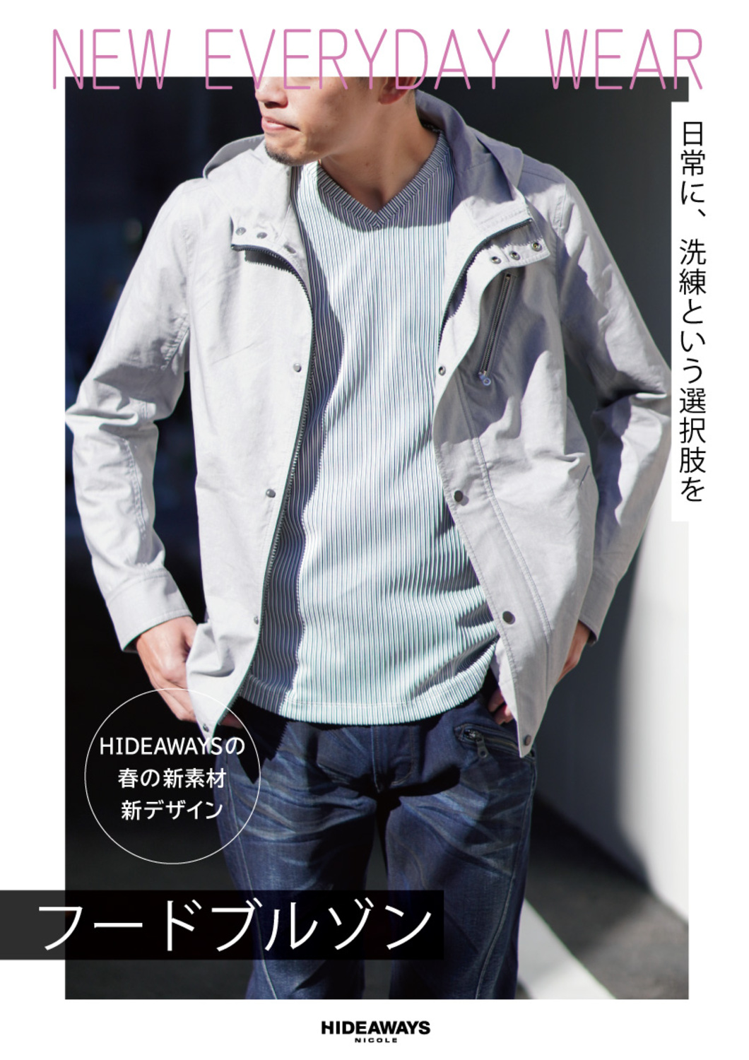 HIDEAWAYSでは一足早く春の新作フードブルゾンをご紹介します。