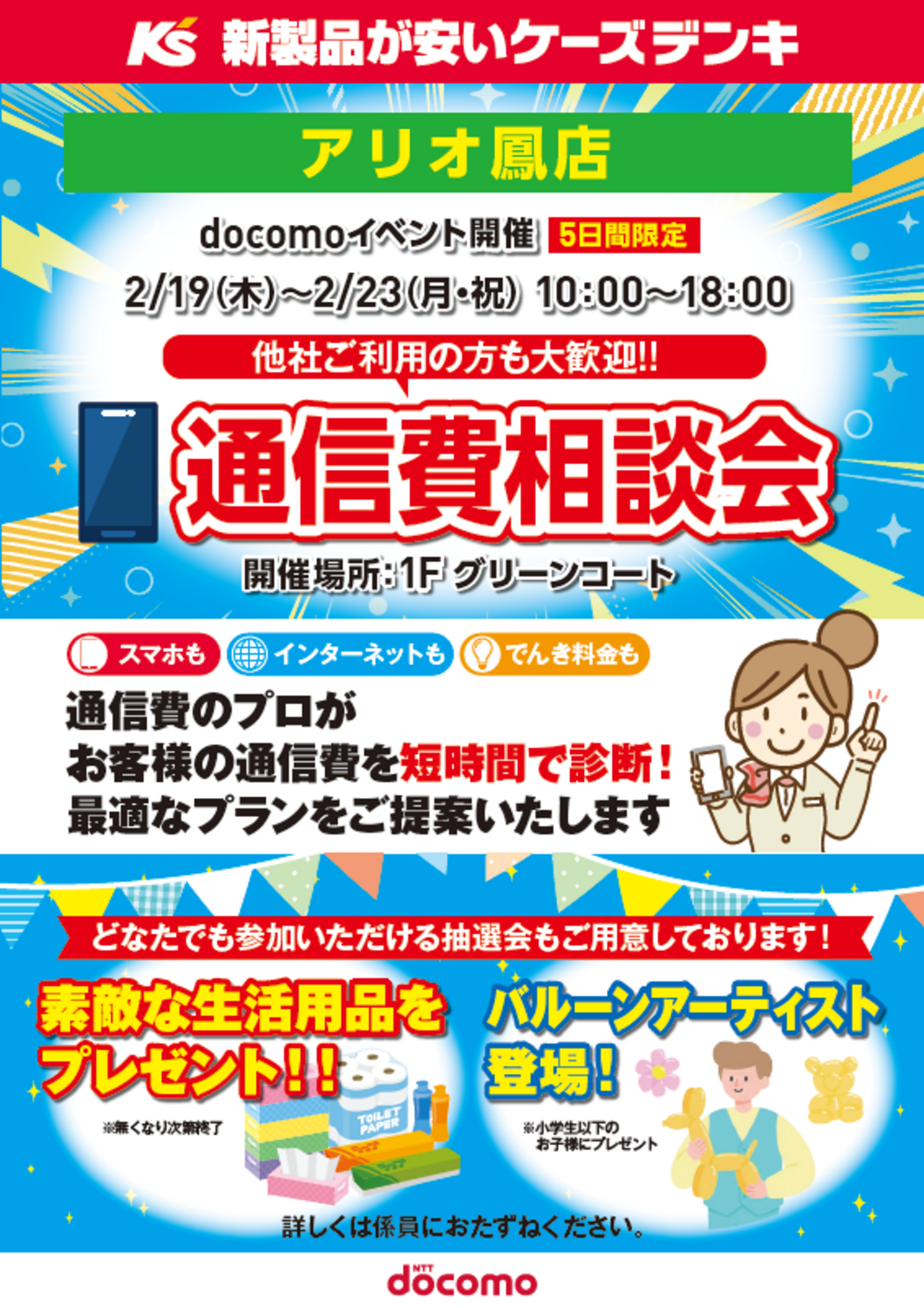 アリオ鳳1階グリーンコートにて、『ドコモ通信費相談会』を