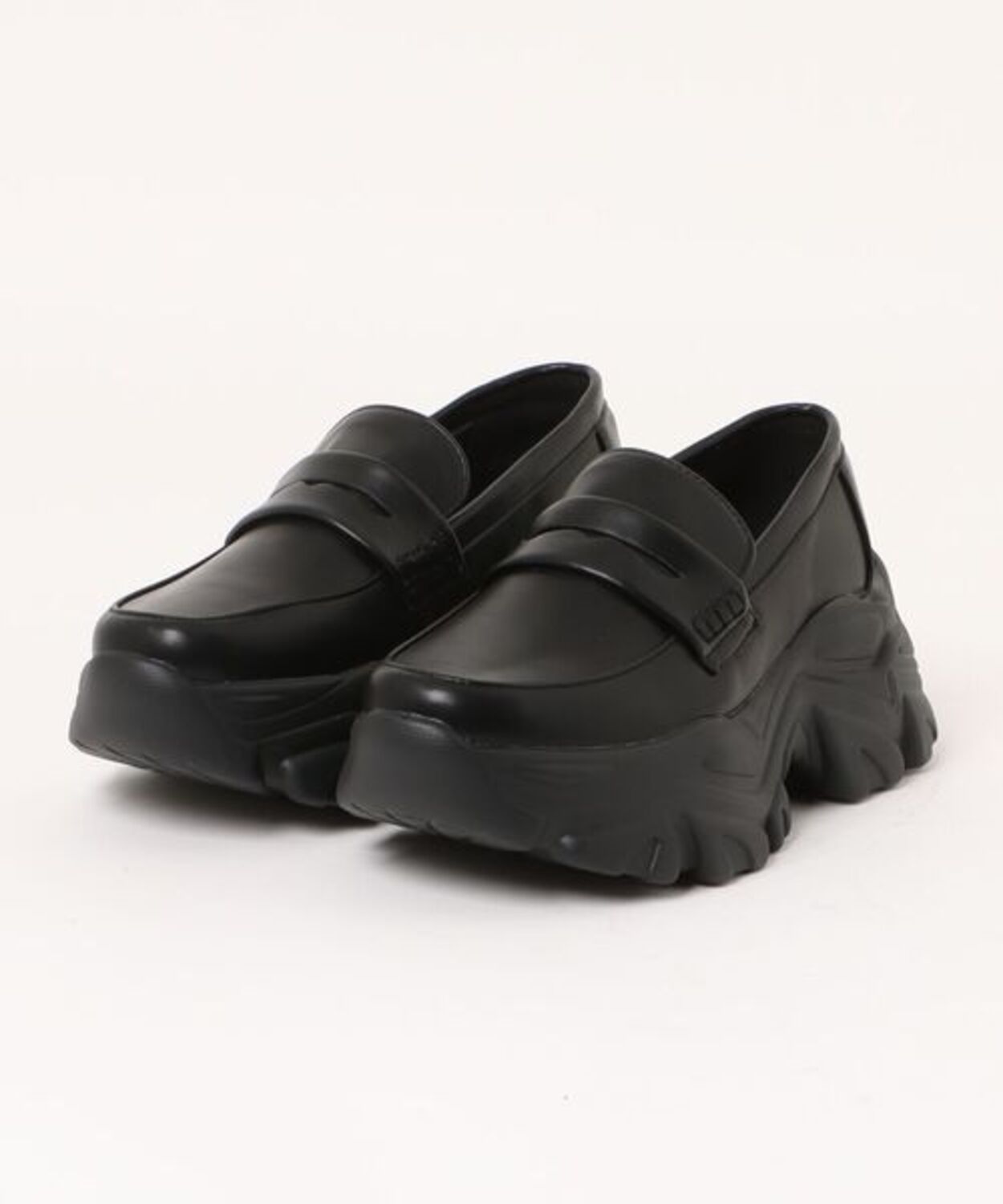 トラッドなペニーローファーのデザインに、エッジの効いた厚底トラックソールを組み合わせた一足です。