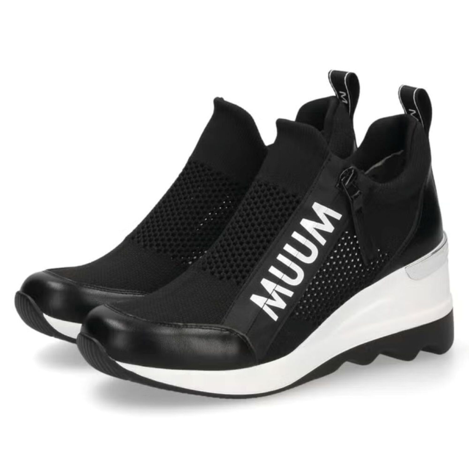スタイリッシュなデザインと快適な履き心地を兼ね備えた、ニットウェッジソールスニーカー。