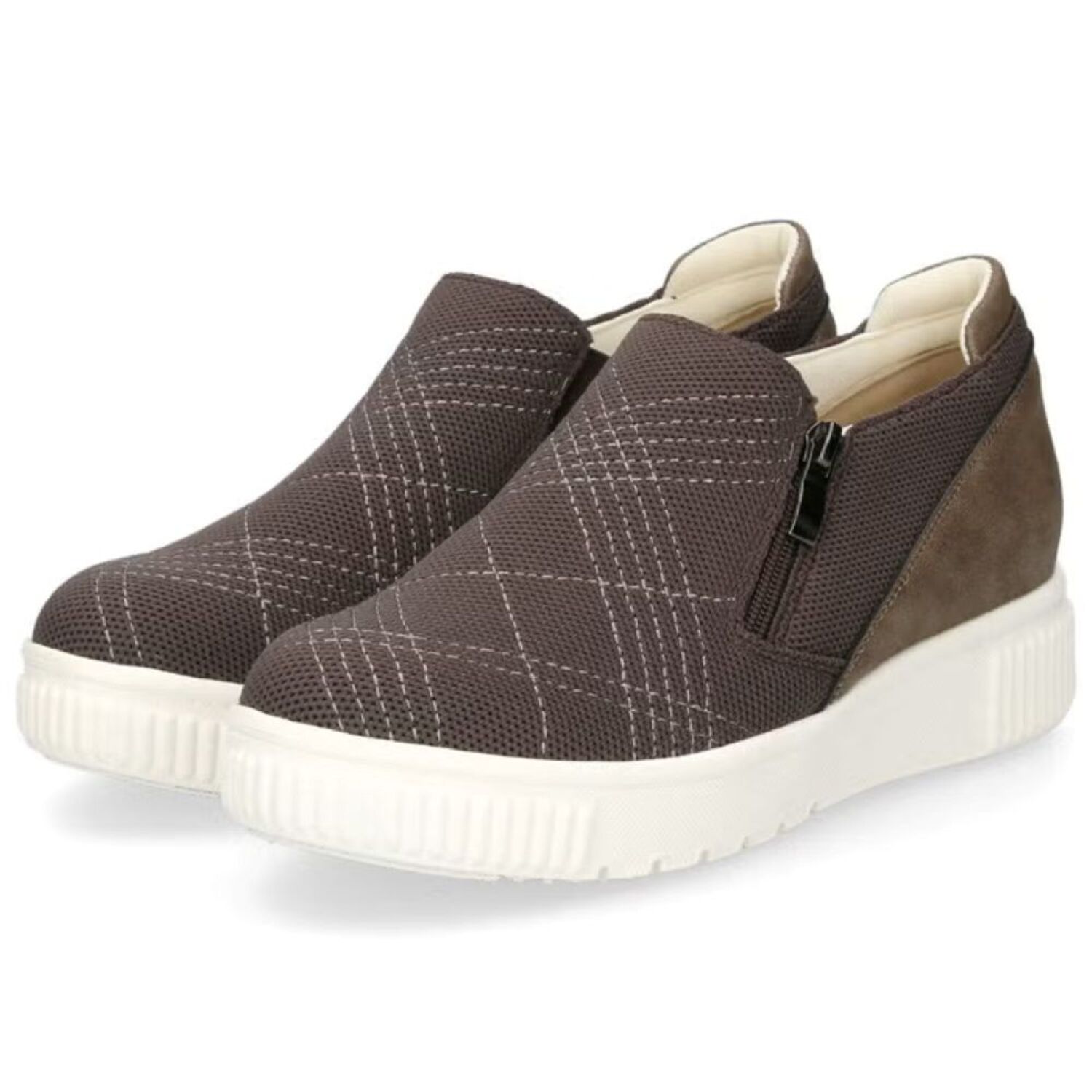 サイドファスナー付きで着脱もスムーズ。軽量設計に加え、インヒール仕様でさりげなく脚長効果も。厚みのあるソールはしっかりと地面を捉え、長時間のお出かけでも疲れにくいです。