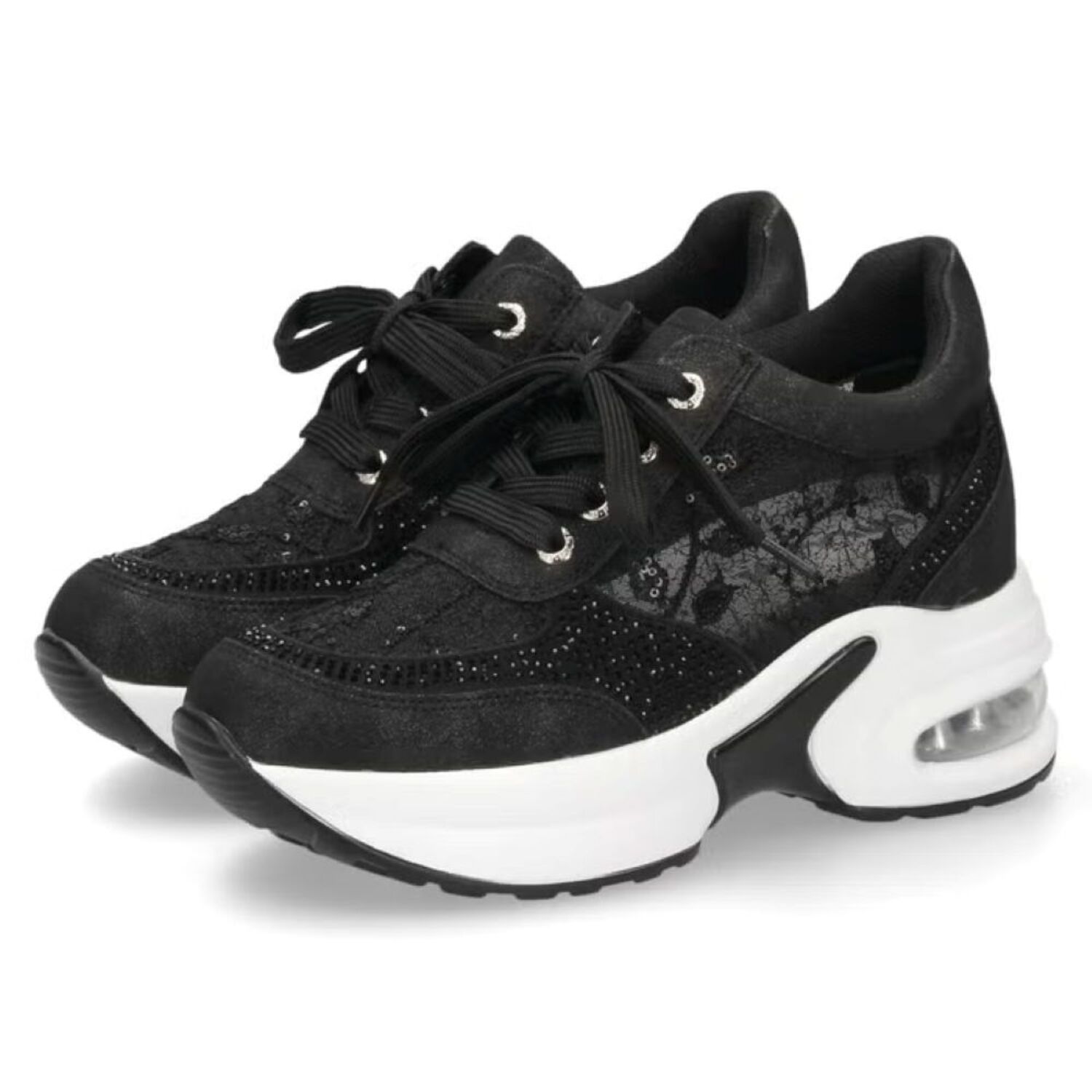 スポーティーなエアソールに、繊細なチュールレースを組み合わせスニーカー。