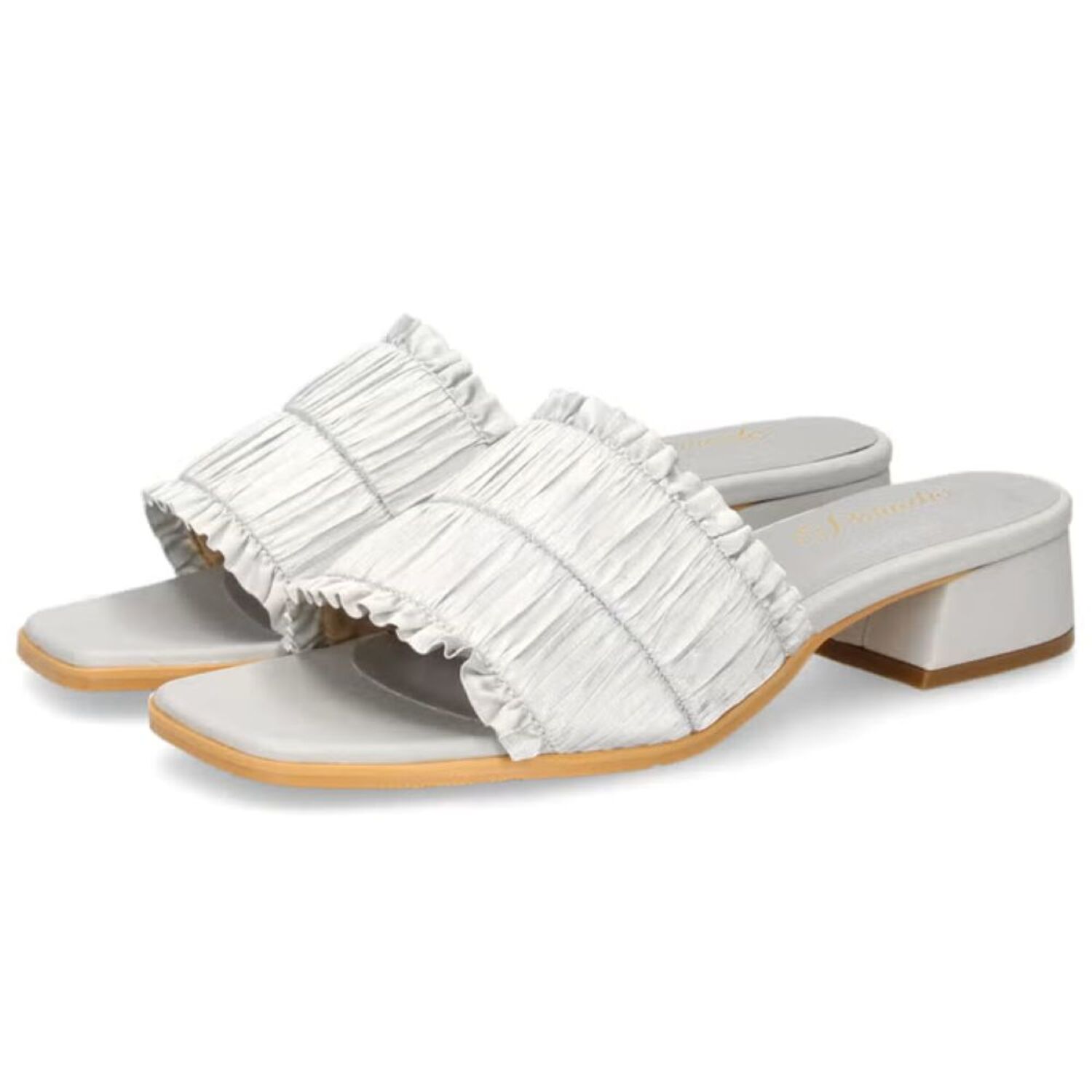 上品な光沢感と立体感のあるフリルが、足元を華奢に演出します。甘すぎないデザインなので、大人カジュアルに最適です。