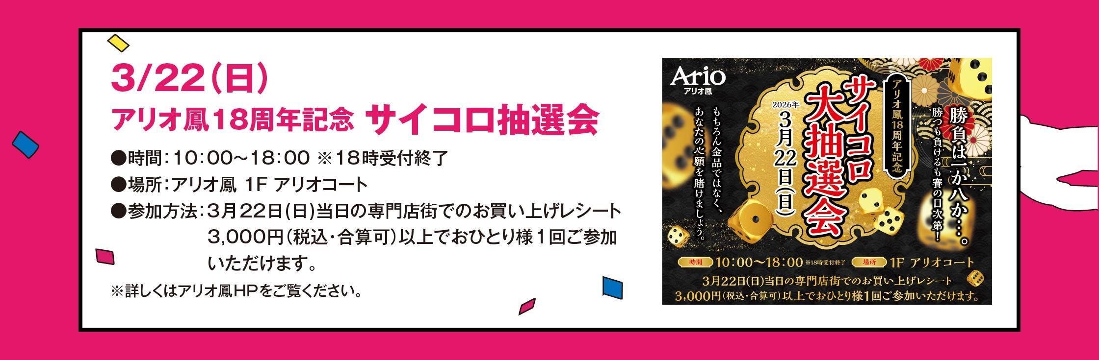 【3月20日(金)スタート!】アリオ鳳18周年祭イベント情報